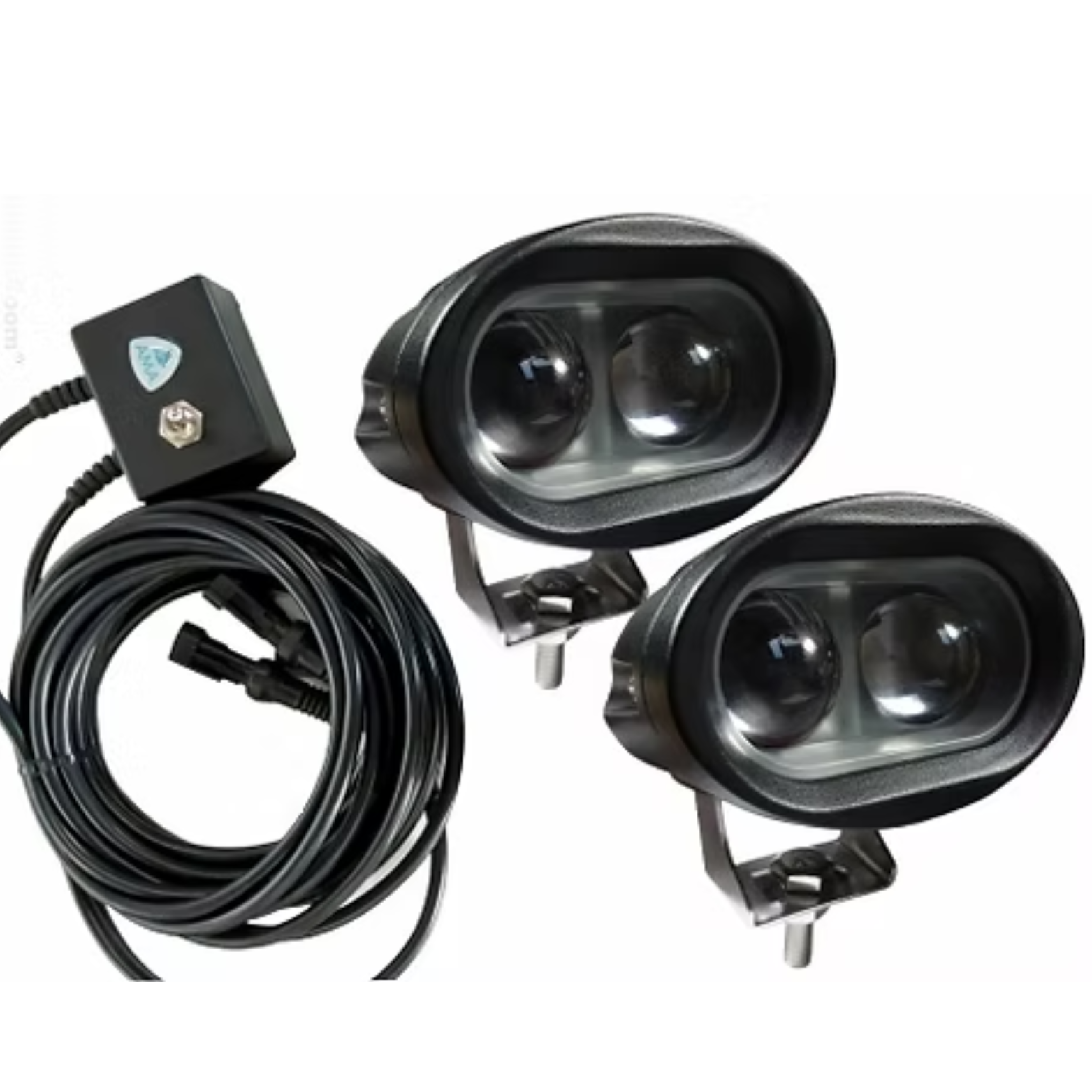 Os Faróis de Led, luz azul, da AMA foram especialmente projetados para iluminar o jato de líquido dos pulverizadores, permitindo ao operador controlar o funcionamento dos bicos mesmo durante a noite. A cor azul projetada por estes equipamentos da AMA tornam a melhor solução para iluminar sua barra de pulverização, além de proporcionar um efeito visual impressionante.